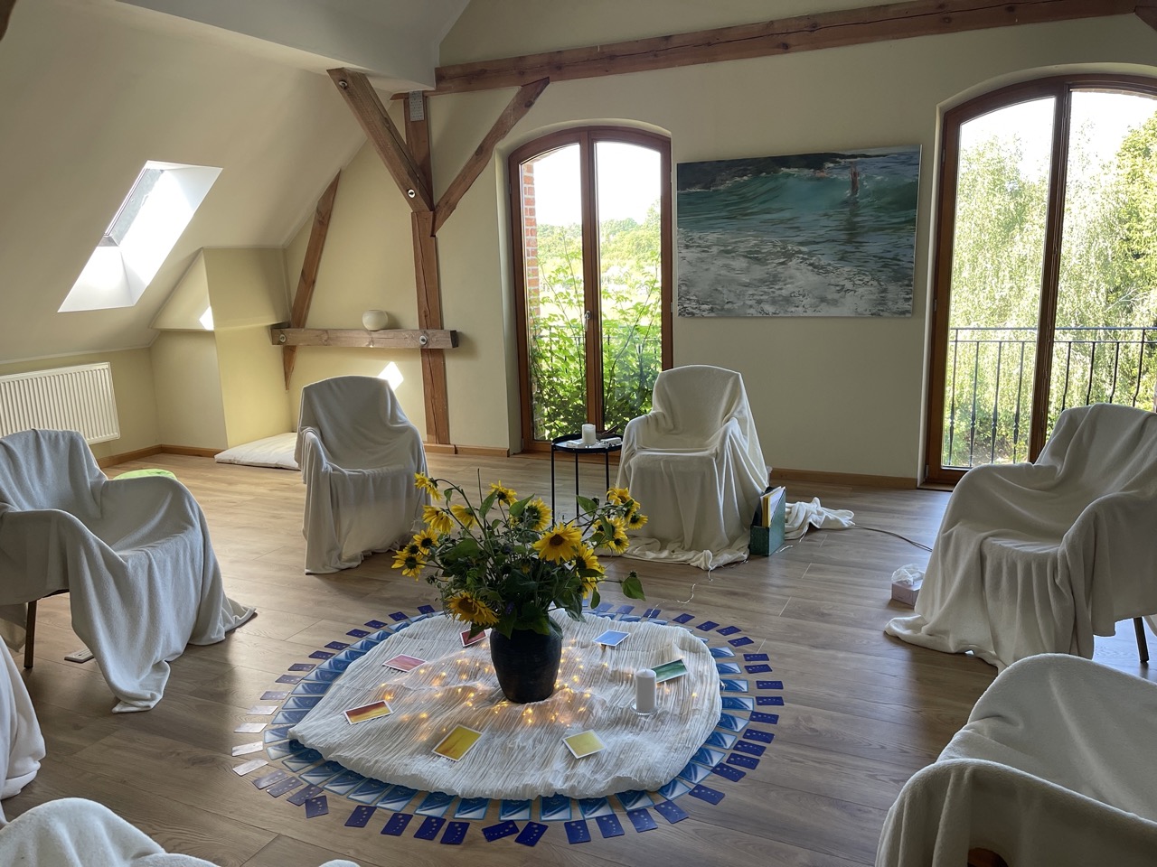 Der Künstlerhof am Roofensee bietet alles was ich mir für ein Seminar wünsche. Ruhe und Natur, ein See ganz in der Nähe, Unterkunft vor Ort. Sehr geschmackvoll eingerichtete Apartments für Rückzug und Entspannung und das wichtigste für mich: einen wunderschönen und energetisch ausbalancierten Seminarraum. Ein magischer Ort, mitten in der Natur, nahe am See. Hier kannst Du ganz bei dir ankommen, Kraft schöpfen und tiefer gehen.